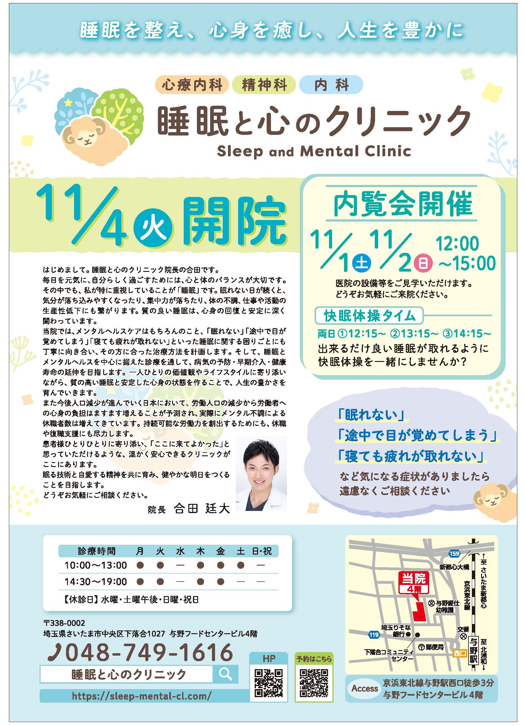 院内の雰囲気をご覧いただけるほか、当院が大切にしている“質のよい睡眠”のための簡単な「快眠体操」を、ご来場の皆さまと一緒に体験いただけます。